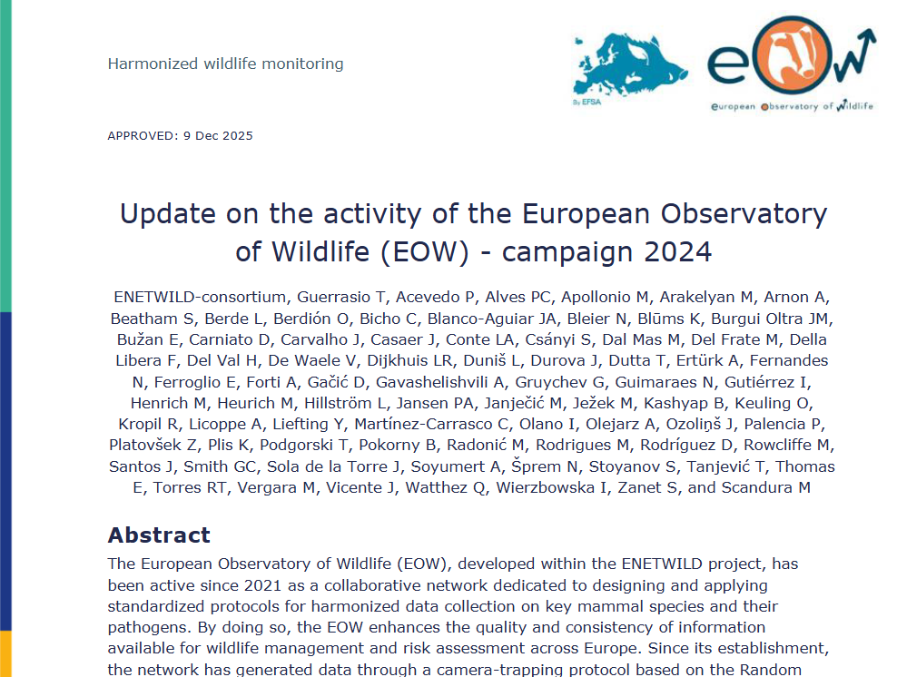 Update on the activity of the European Observatory of Wildlife (EOW) – campaign 2024